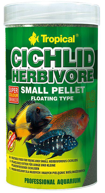 Tropical cichlidefoder til planteædere, medium pellets 1000 ml/360 g er udviklet specielt til planteædende cichlider og andre herbivore akvariefisk. Medium pellets gør det let for mellemstore cichlider at gribe foderet, samtidig med at sammensætningen dækker fiskens behov for fibre, vitaminer og mineraler til en daglig, afbalanceret ernæring.