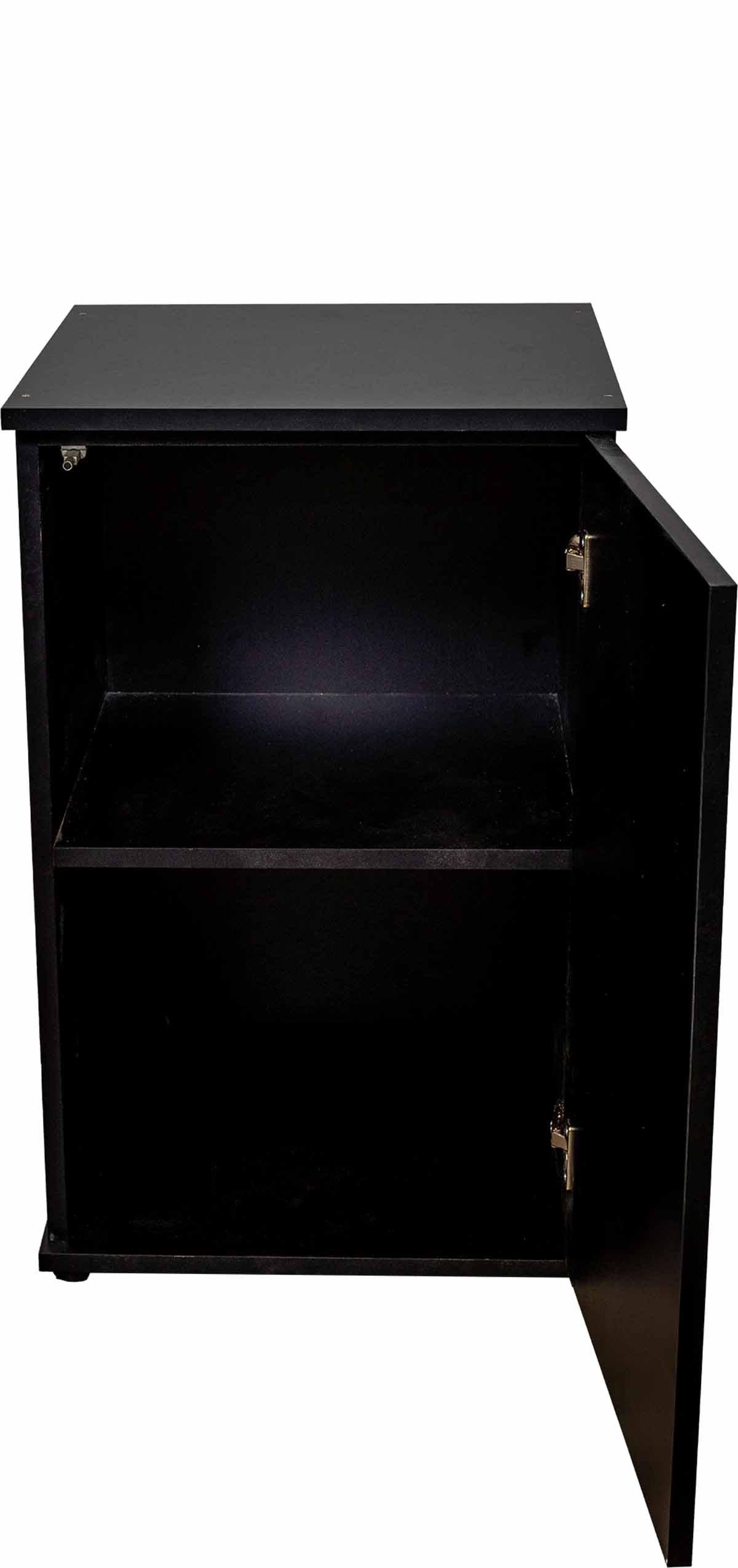 Bag en enkelt låge gemmer sig en diskret opbevaringsløsning, perfekt til foder, håv, vandbehandlingsmidler og andre akvarietilbehør. Den lukkede løsning holder udstyr ude af syne og gør det nemmere at holde området ryddeligt uden at gå på kompromis med funktionaliteten.