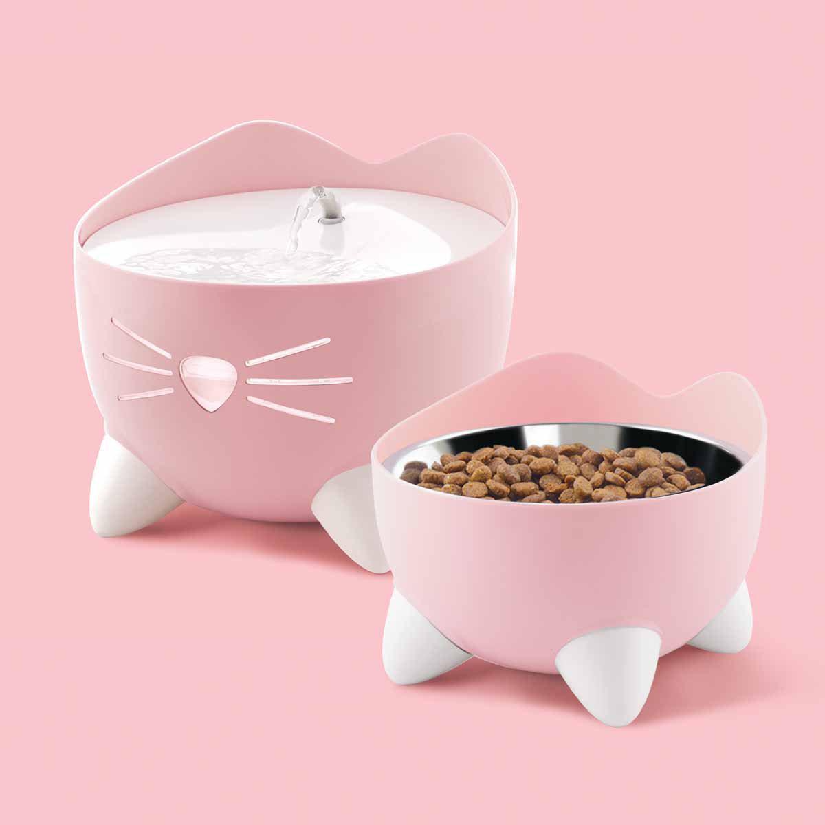 Vil du give din kat bedre adgang til frisk vand og en praktisk foderskål i samme design, er Combo kit Pixi rosa fontæne + skål fra Catit et enkelt og gennemført valg. Bestil i webshoppen og skift filtre løbende for at holde vandet rent.