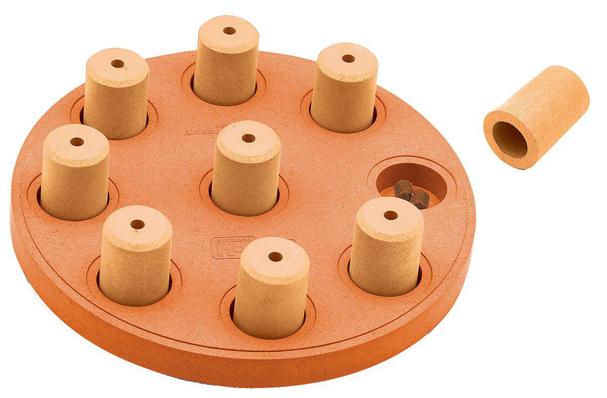 Puslespillet har ni gemmesteder til godbidder, som du kan fylde med din hunds yndlingssnacks. Du vil opleve, at hunden bruger næse, poter og snude til at pille, skubbe og fjerne propper for at finde de skjulte belønninger. Sværhedsgraden kan varieres, så legen tilpasses din hunds evner og gradvist gøres sværere, efterhånden som den lærer teknikkerne.
