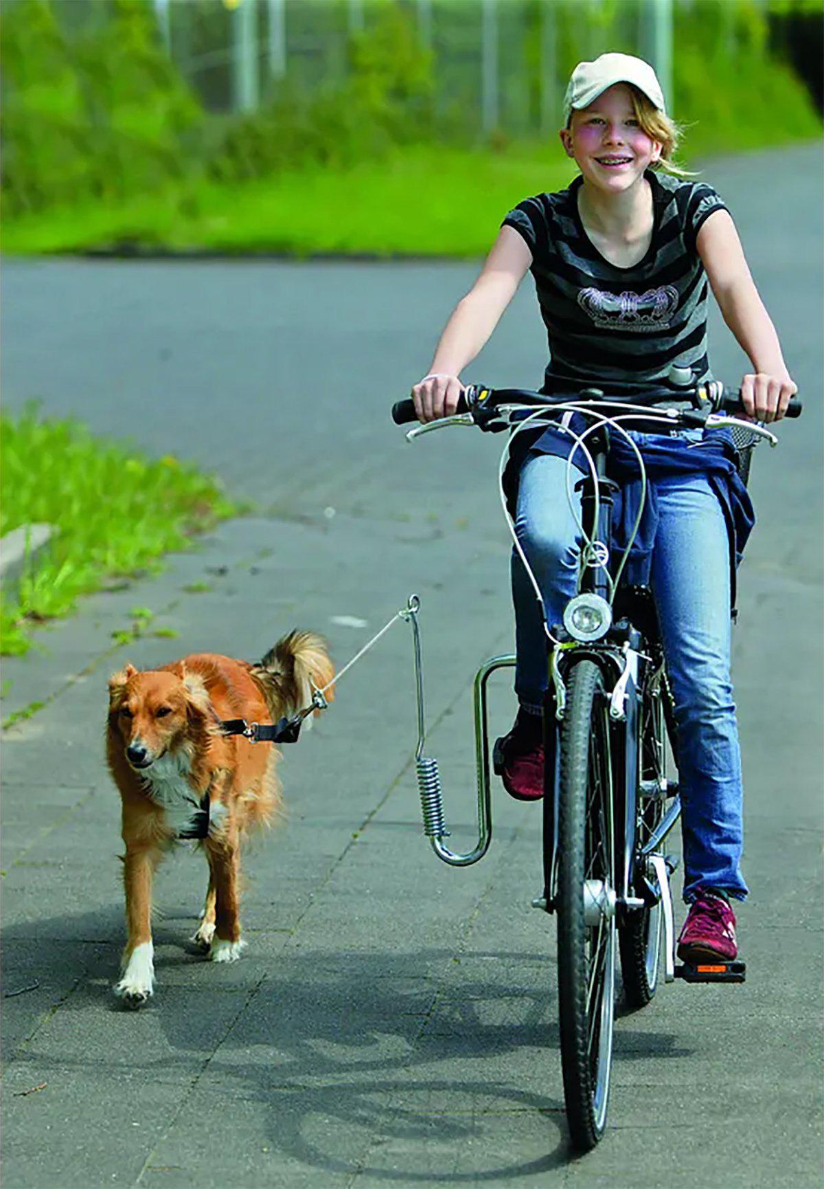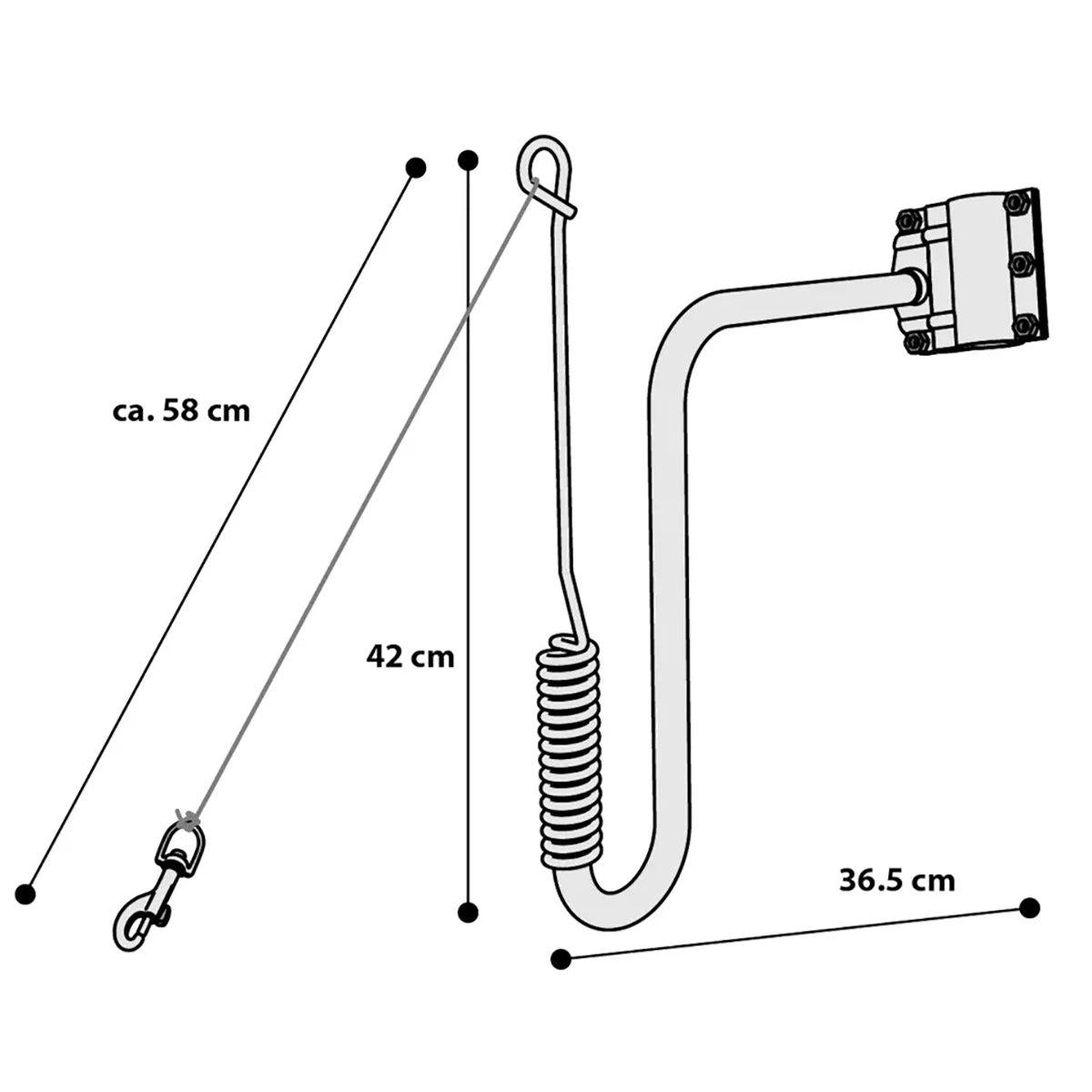 Doggy Guide hundeline til cykling er en praktisk løsning til cykelture med hund, hvor sikkerhed og kontrol er i fokus. Produktet består af en metalbøjle, der fastgøres til sadelpinden, og en karabinhage med skruelås, så linen sidder solidt under kørslen. En robust fjeder mellem bøjle og karabinhage dæmper ryk og træk, så både fører og hund får en blødere og mere stabil oplevelse.
