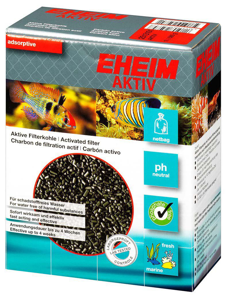 Det aktive kul kan bruges i både indvendige og eksterne filtre og placeres nemt i filterkurve eller filterbokse takket være netposen. Eheim Aktiv egner sig til de fleste ferskvands- og marineakvarier og fungerer som et effektivt supplement til mekanisk og biologisk filtrering — det erstatter dog ikke biologisk filtermedia. Aktivt kul hjælper blandt andet med at fjerne farvestoffer efter medicinering eller rådne plantedele og reducerer uønsket lugt.