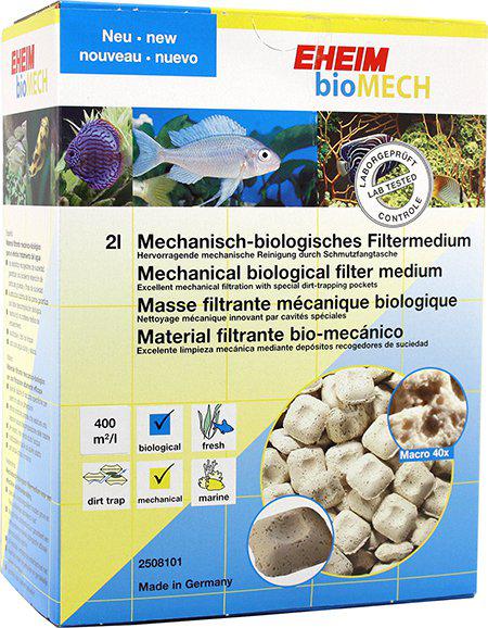 Materialet er let at skylle i akvarievand ved rutinemæssig rengøring og bevarer sin porøsitet, så bakteriefloraen hurtigt kan genopbygges. Eheim Bio Mech fungerer godt som løst medium i standard filterkurve, filterbokse og andre rum, hvor løst filtermateriale anvendes, og er ideelt til akvarieejere, der ønsker en enkel og pålidelig løsning til både mekanisk og biologisk filtration.