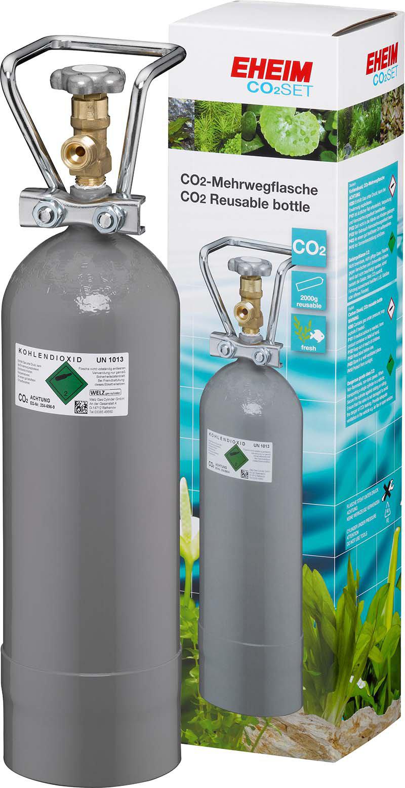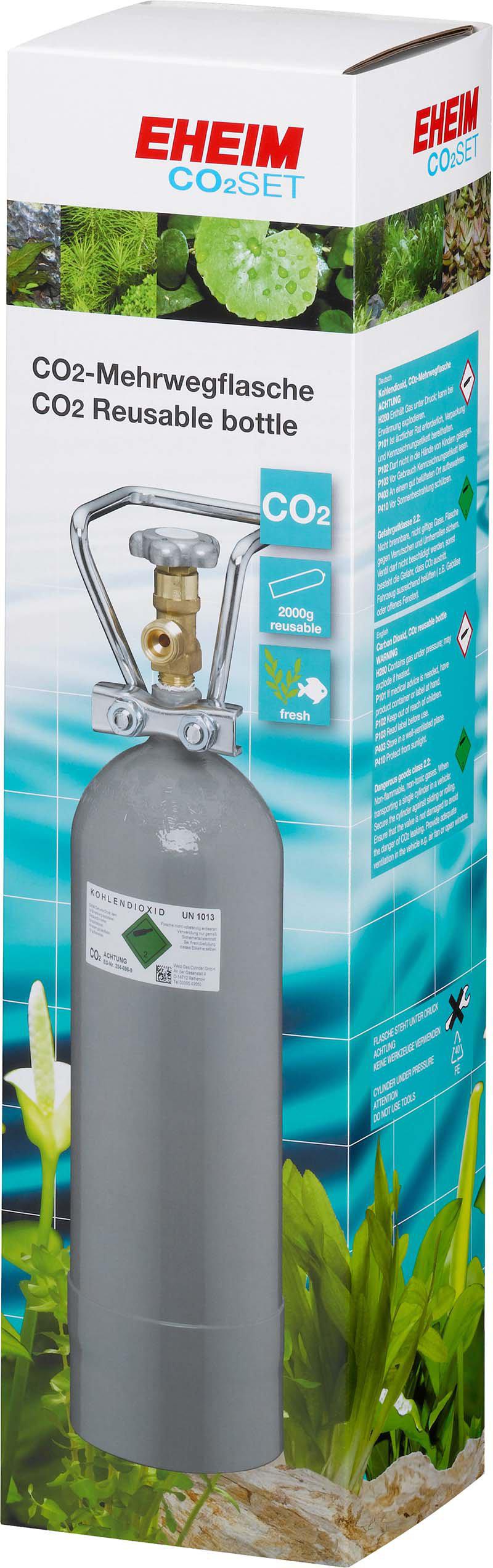 Som genopfyldelig CO2-flaske reducerer Eheim CO2 2000 g den løbende økonomi og mængden af affald sammenlignet med engangspatroner. Flasken kan anvendes sammen med CO2-regulatorer og andet udstyr beregnet til flaskemonteret gasforsyning, så den nemt indbygges i eksisterende CO2-systemer til akvarier og planted aquarium-opstillinger, der kræver præcis dosering og jævn gasforsyning.