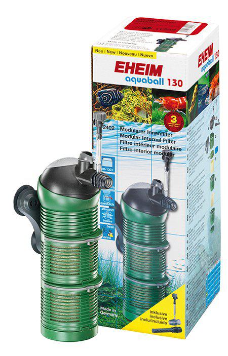 Eheim indvendigt filter 2210 Aquaball 130 er et kompakt indvendigt filter til akvarier op til 130 liter med en pumpeeffekt på 180 l/h. Filteret er ideelt for hobbyakvarister, der ønsker en enkel og effektiv løsning til både mekanisk og biologisk filtrering i mindre til mellemstore akvarier.