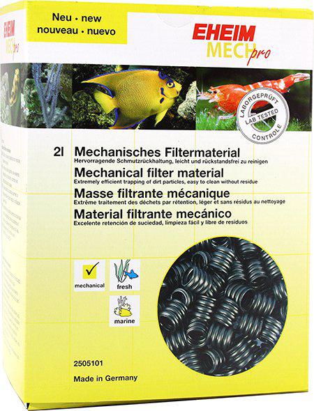 Eheim Mech Pro Filtermedia 2L er et effektivt mekanisk filtermedium til akvarier, leveret i en 2L-pakning. Materialet er udviklet til at tilbageholde grovere partikler og suspenderet snavs, så vandet fremstår klarere, og filterets biologiske lag kan arbejde mere effektivt.