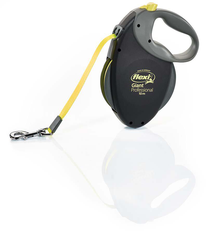 Flexi hundesnor Giant Professional L 10 m bånd, sort, max 50 kg er en robust retræksnor (rulleline) designet til større hunde. Med et 10 m bånd får din hund frihed uden at du mister kontrollen — snoren er beregnet til hunde op til max 50 kg. Båndet er vævet for ekstra slidstyrke, huset er solidt, og forbindelsen til halsbånd eller sele sikres af en kraftig metal karabinhage.