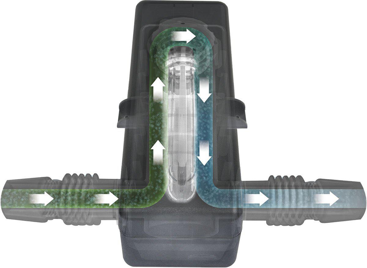 Den kompakte enhed er designet til at monteres inline i eksisterende filterslanger og passer diskret i et akvarieskab uden at ændre dit nuværende filtreringssystem. Fluval in-line UVC-klarer 400L er velegnet til hobbyakvarier, hvor målet er klarere vand og færre flydende mikroalger — helt uden kemikalier.