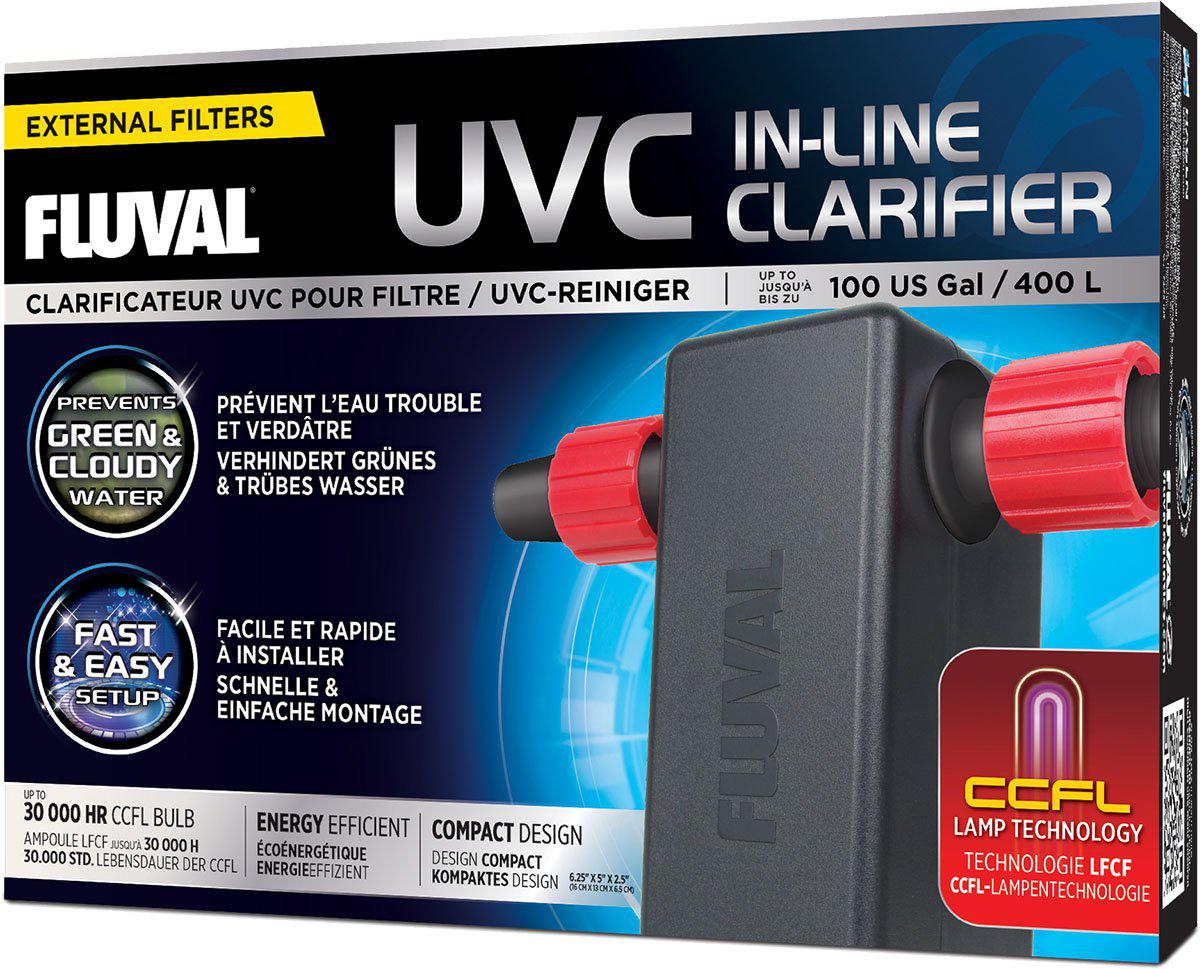 Fluval in-line UVC-klarer 400L bruger Fluval CCFL-teknik til effektivt at bekæmpe grønt og grumset vand ved at udsende kraftfuldt, DNA-ødelæggende UVC-lys. Den kemikaliefrie behandling fjerner slim- og algeproblemer uden at påvirke de gavnlige, overfladebeboende bakteriekolonier, som allerede er etableret i dit filter.