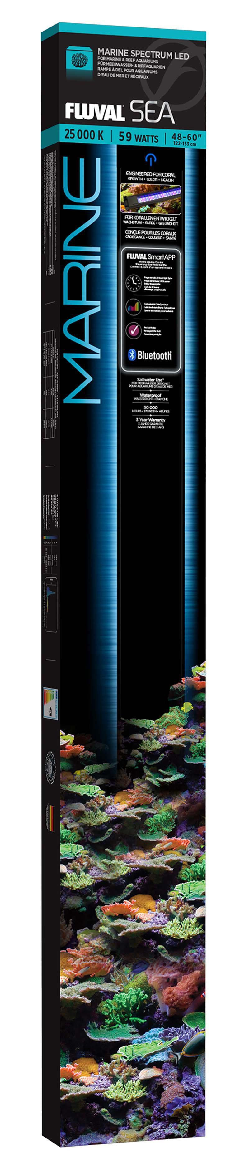 Fluval Sea Marine 3.0 LED 59 W 122–153 cm er en LED-akvarielampe udviklet til saltvands- og reef-akvarier med en bredde på 122–153 cm. Lampen kombinerer energieffektiv LED-teknologi med et spektrum, der fremhæver farverne på fisk og koraller og understøtter kontrollerede lyscyklusser til koralvækst og æstetik.