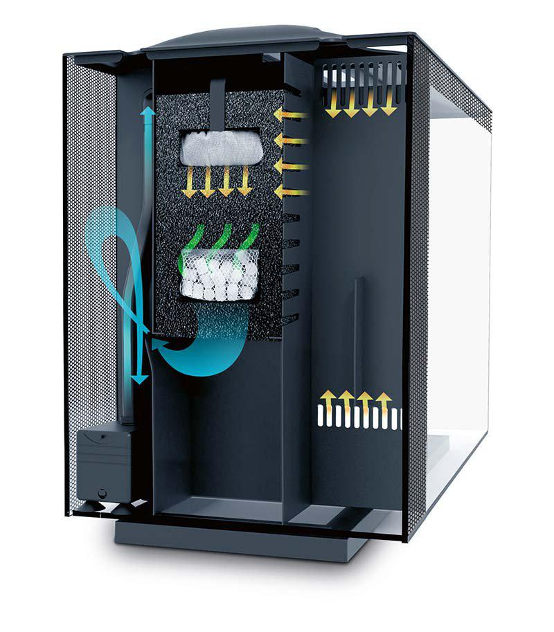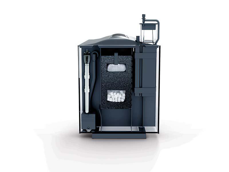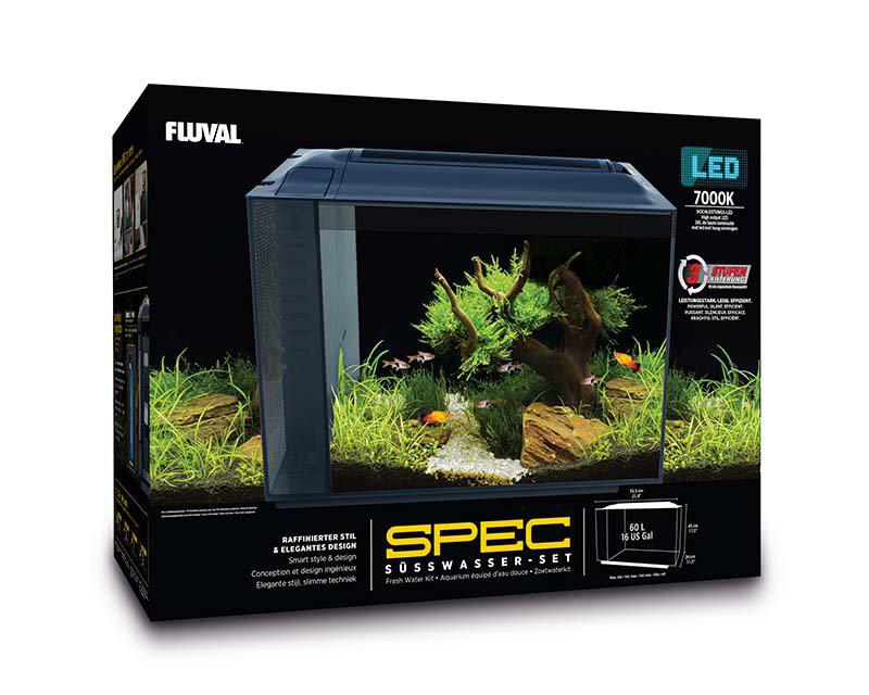 SPEC 60L leveres med Fluvals 3-trinsfiltreringssystem og indeholder glasakvarium med ramp, LED-belysningssystem, sikker lavspændingstransformator, luftpumpe med udløbsmundstykke samt Fluval skumfilterblock med håndtag, Fluval aktivt kul indsats og Fluval BioMax indsats. Medfølgende filtermedia gør det nemt at opretholde klart vand og god biologisk filtrering uden ekstra køb.