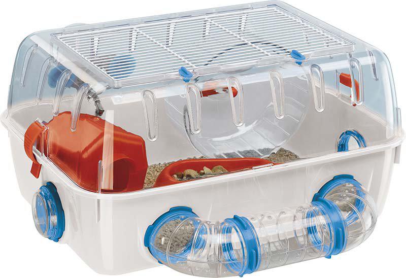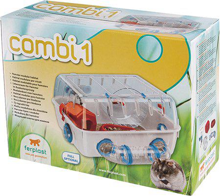 Combi 1 leveres med foderautomat, et lille hus, et hamsterhjul, en drikkeflaske og plastikrør, så din hamster har mulighed for både mad, leg og skjul. Det gør buret klart til brug fra dag ét.