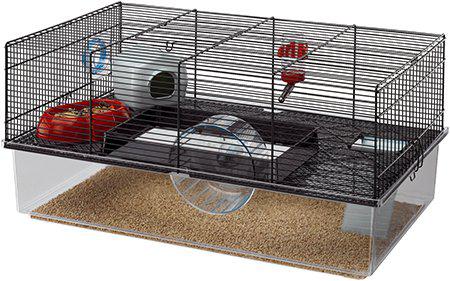 Favola-buret har en stor gennemsigtig plastbund designet til savsmuld og en overdel i trådnet, så både luftcirkulation og udsyn er optimale. Buret er opdelt i to plan med et hul i det øverste plan til montering af træningshjul. De nøjagtige mål er 60x36.5x30cm, hvilket giver god plads til små gnagere.
