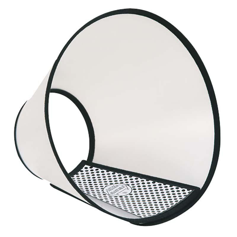 Den bløde plys-kant reducerer risikoen for irritation og gnidning mod huden, samtidig med at kraven begrænser adgang til sår eller bandager. De angivne mål — halsmål 31.5 cm og dybde 20.5 cm — er afgørende for, hvordan kraven sidder, så mål altid nakken før køb.
