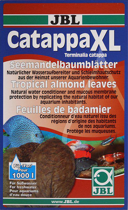 JBL Catappa XL 24CM10 blade er naturlige Catappa-blade (Terminalia catappa) i ekstra stor størrelse. Produktet leveres som hele, tørrede blade og er velegnet til ferskvandsakvarier, hvor du ønsker en mild blackwater-effekt med naturlige tanniner og huminsyrer. Catappa-blade bruges ofte i akvarier til rehjem, discus, shrimp og betta for at efterligne naturlige forhold og skabe skjulesteder for yngel.