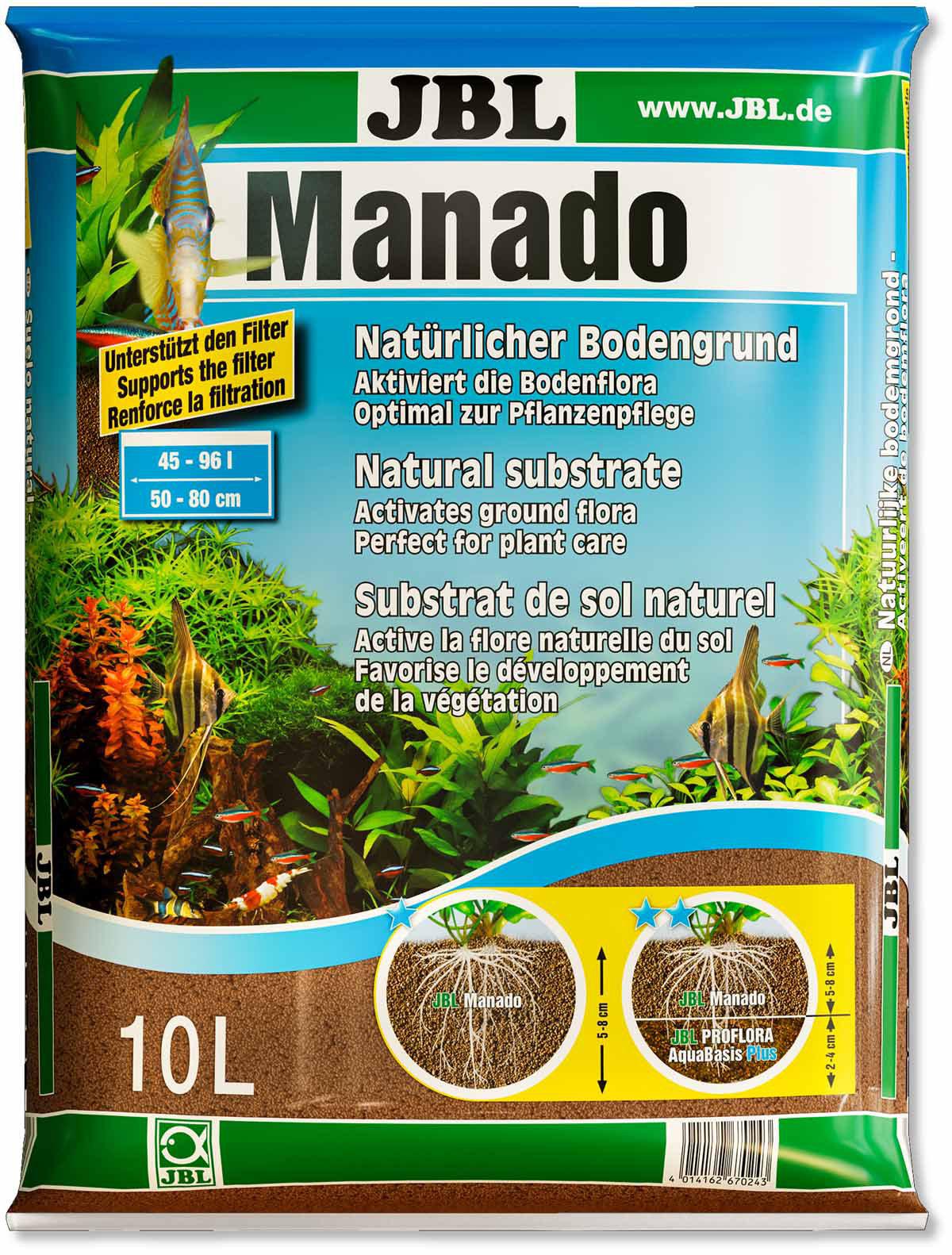 Jbl Manado bundsubstrat 10L er et naturligt akvariesubstrat, som aktiverer jordfloraen og er udviklet til plantepleje i ferskvandsakvarier. Den særlige næringsbuffer fungerer med en batteri-effekt og frigiver næringsstoffer løbende, indtil den er opbrugt, og kan genoplades ved ny gødning. Substratet er vandneutral og består af rundede korn, der er skånsomme mod plantens rødder.