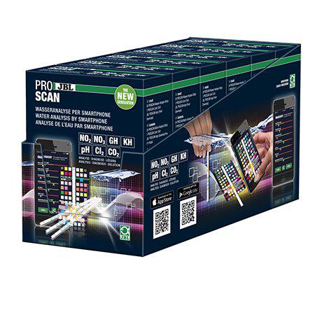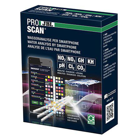 Brugen er enkel: download den gratis ProScan-app, dyp en teststrimmel i vandet, læg strimlen på det medfølgende farvekort og scan kortet med din smartphone. Appen analyserer farveskiftet og giver både måleværdier og konkrete anbefalinger til justering for ferskvandsakvarier og damme.