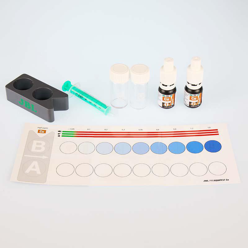 JBL PROAQUATEST Cu kobbertest er et praktisk testkit, der gør det muligt at måle kobberindholdet i akvarievand. Kobber kan være giftigt for fisk og især for invertebrater, så regelmæssig kontrol af vandkvaliteten er vigtig for både ferskvands- og marinehobbyister. Med JBL PROAQUATEST Cu får du en enkel metode til at overvåge kobberniveauet og reagere hurtigt, hvis der opstår problemer.