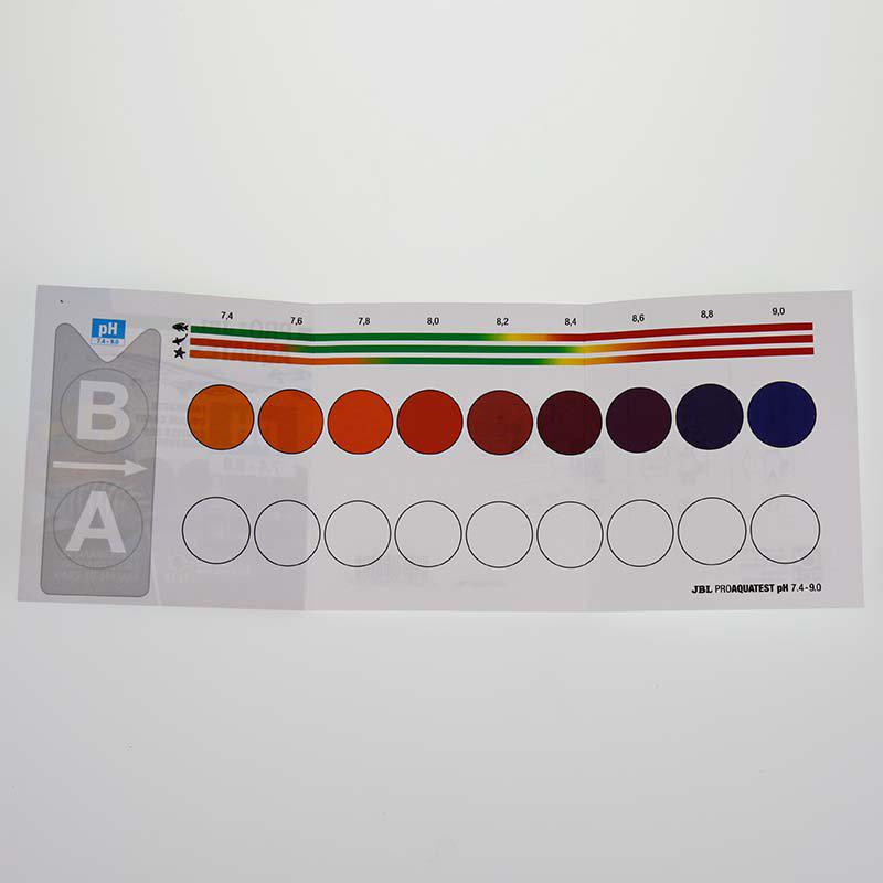 JBL PROAQUATEST pH 7.4-9.0 er en væskebaseret pH-test til måling i området 7,4–9,0. Testen er udviklet til akvariebrug og er især relevant for saltvandsakvarier og andre opsætninger med basisk eller hårdere vand, hvor pH ligger over neutral.