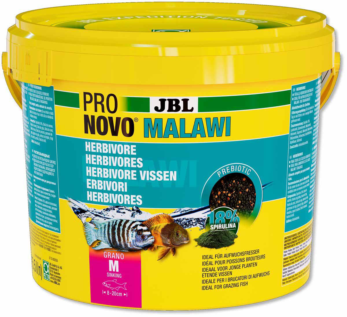 JBL ProNovo Malawi Grano M 5,5 l er et mellemstort granulatfoder udviklet specifikt til afrikanske cichlider fra Lake Malawi. Den 5,5 l pakning giver rigeligt foder til akvarier med større bestande, og M-størrelsen passer til middelstore og større fisk.
