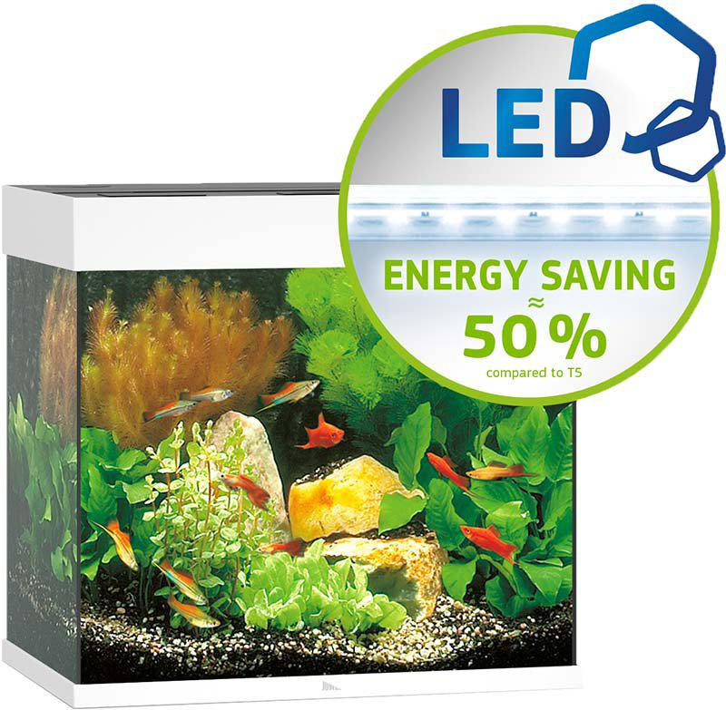 Den moderne MultiLux LED-teknologi fra JUWEL leverer høj lysstyrke og et velafstemt spektrum, der understøtter plantevækst og fremhæver fiskefarver. De udskiftelige 438 mm DAY and NATURE LED-lysrør skaber et optimalt lysmiljø og bruger mindre energi end traditionelle T5-rør. Belysningsenheden er helt vandtæt og opfylder gældende europæiske sikkerhedsstandarder, så du trygt kan arbejde i og omkring akvariet, mens lyset er tændt.