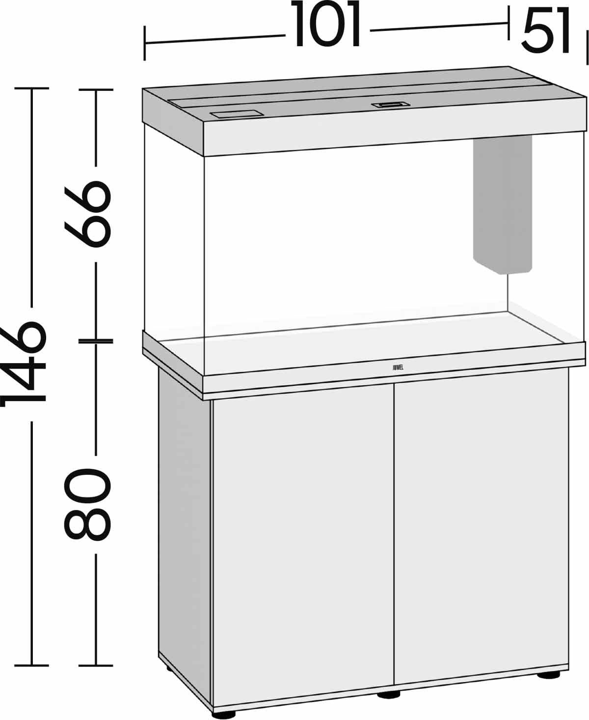 Juwel akvarium Rio 290 Led hvidt 101x51x66 cm 290 L kombinerer tidløs, elegant formgivning med moderne teknologi. Den klassiske rektangulære silhuet giver et roligt udtryk i stuen, og med en dybde på 54 cm får du en god, uforstyrret udsigt ind i akvariet — perfekt til planter og indretning, hvor detaljerne skal ses klart.