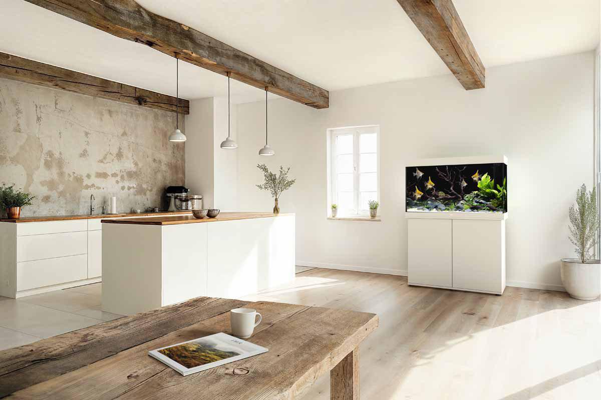 Akvariet er udført med en sikkerhedsbasramme, som sikrer stabil og sikker placering uden behov for særlige støtter. Materialer af høj kvalitet og omhyggeligt håndværk fra Tyskland giver en pålidelig konstruktion og lang levetid. Den indbyggede LED-belysning leverer et naturligt lys til planter og fisk og skaber samtidig et energieffektivt lysmiljø.