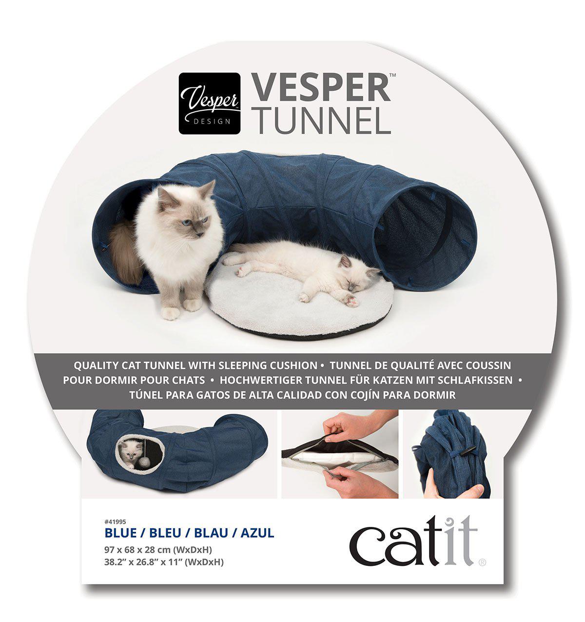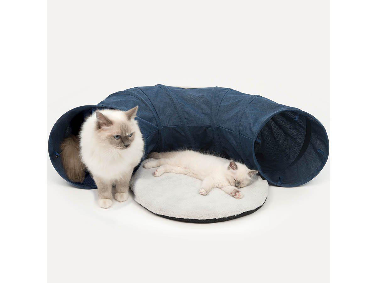 Tunnelen er nem at placere i stuen, soveværelset eller ved kattemøbler og bidrager til et mere stimulerende kattemiljø. Den blå farve giver et stilrent udtryk, og Catit Vesper-designet indbyder til jagtlege, kravlen og korte lure.