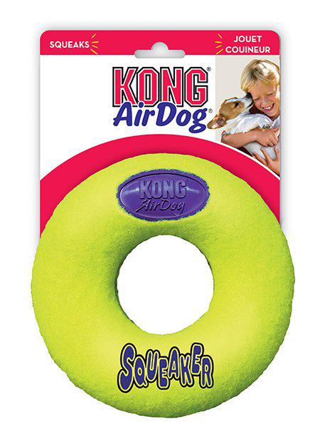 Kong AirDog SqueakAir Donut L 17x5 cm er et lydgivende hundlegetøj, der kombinerer elementer fra en tennisbold og en squeaker for at skabe et engagerende apportlegetøj. Den karakteristiske pipelyd vækker jagt- og legelyst hos mange hunde, og donut-formen gør den nem at gribe og kaste både ved træning og i haven.