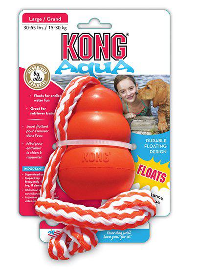 KONG Aqua er et flydende apportlegetøj, der inviterer til leg og motion både i og uden for vandet. Legetøjet har en skumkerne, som sikrer, at det flyder, når din hund svømmer ud for at hente det, og gør det ideelt til henteleg i sø, hav eller pool.