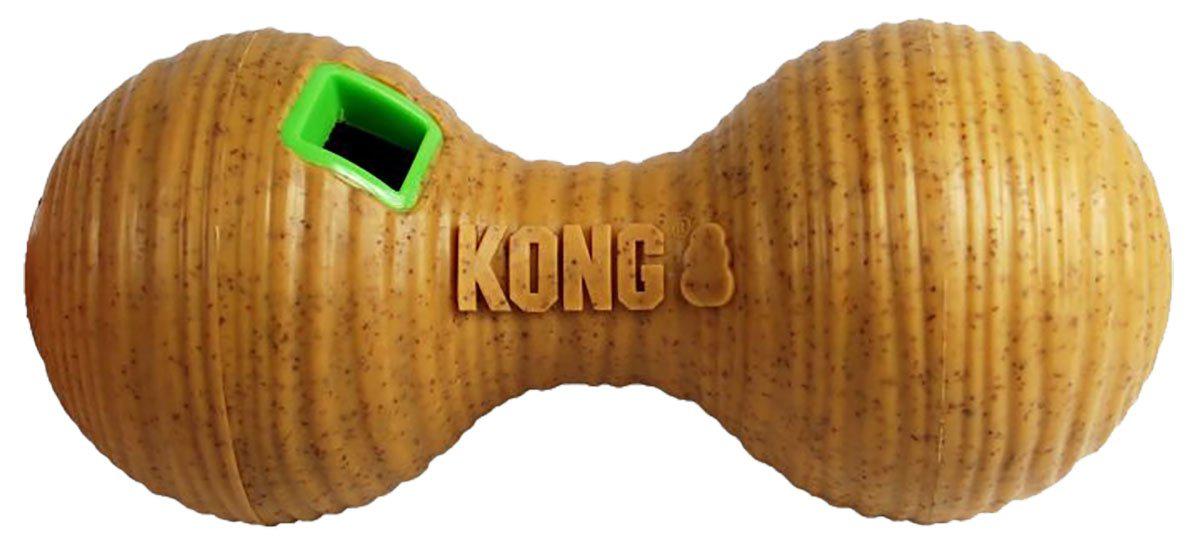 Kong Bamboo Feeder Dumbbel L 8x20x8 cm vrides op og fyldes med tørfoder eller godbidder. Den uforudsigelige måde, den deler snacks på, fastholder hundens interesse og forlænger legestunderne. Som interaktivt hundlegetøj kombinerer den fysisk bevægelse og mental stimulering, så din hund får mere ud af både leg og træning.