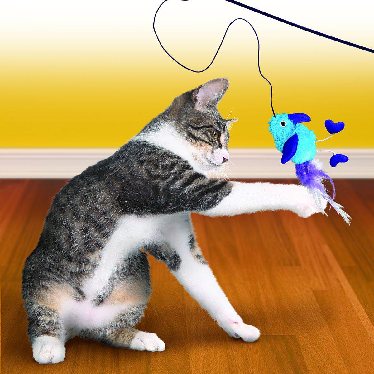 Med en længde på 47 cm får du god rækkevidde, så du kan lege uden at komme tæt på kløerne. Fjer og prasslelyde gør legetøjet velegnet til både killinger og voksne katte, giver mental stimulering og hjælper med at forebygge kedsomhed hos indekatte.