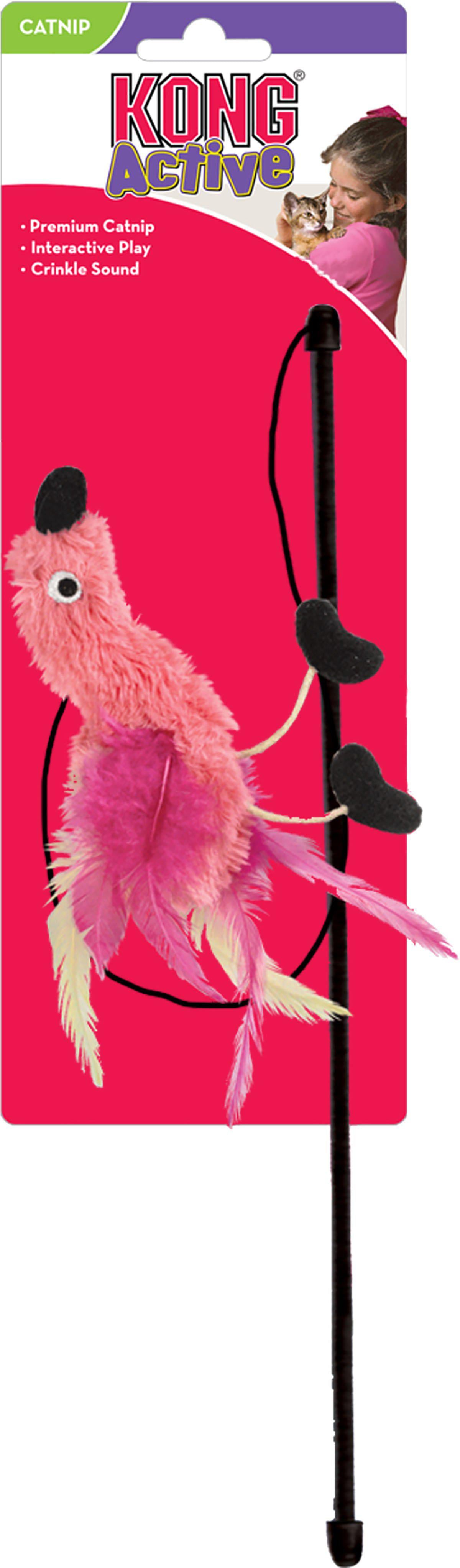 KONG Feather Teaser er designet til interaktiv leg og aktiverer kattens naturlige jagtadfærd. Hver legetøjsdel indeholder KONG Premium nordamerikansk kattemynte for ekstra tiltrækning, og de lyse fjer kombineret med et prasslende lydsignal får katten til at hoppe, jage og fange i legesessioner.