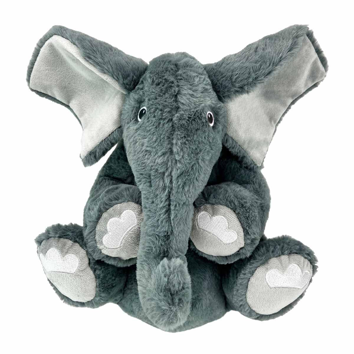 Kong Comfort Kiddos Jumbo Elephant XL 33x33x19 cm er en stor, blød elefant i plysch, designet til hunde og hvalpe, der elsker at kramme og ryste med legetøjet. Elefantens flagrende ører og snabel gør det sjovt at bære rundt, og det aftenvenlige design giver mulighed for dæmpet leg ved at fjerne det indbyggede pip.