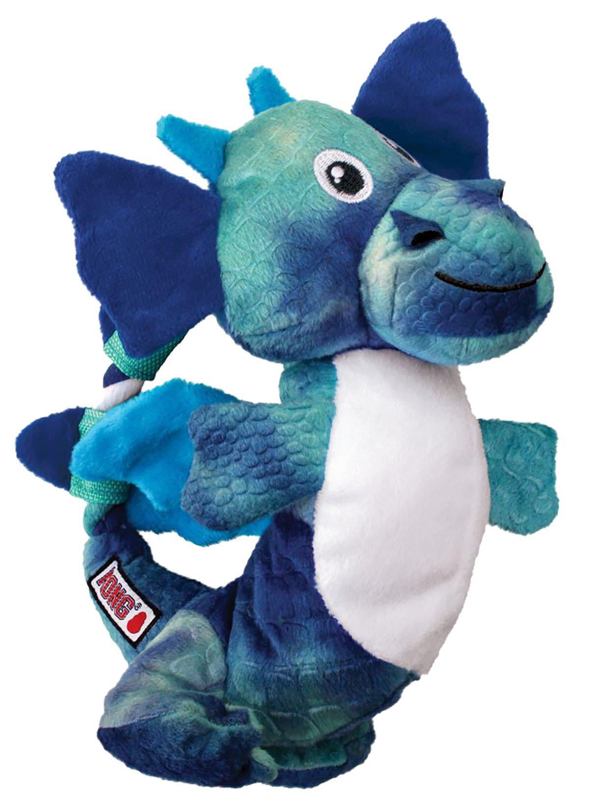 KONG Dragon Knots assorteret M/L 10x16x24 cm er et kreativt og holdbart bidrag til KONGs Knots-kollektion. Det indre knyttede reb giver en autentisk tekstur, den indbyggede pibe i den store krop aktiverer jagtinstinktet, og de prasslende vinger tilfører lyd og variation, så din hund bliver klar til leg.