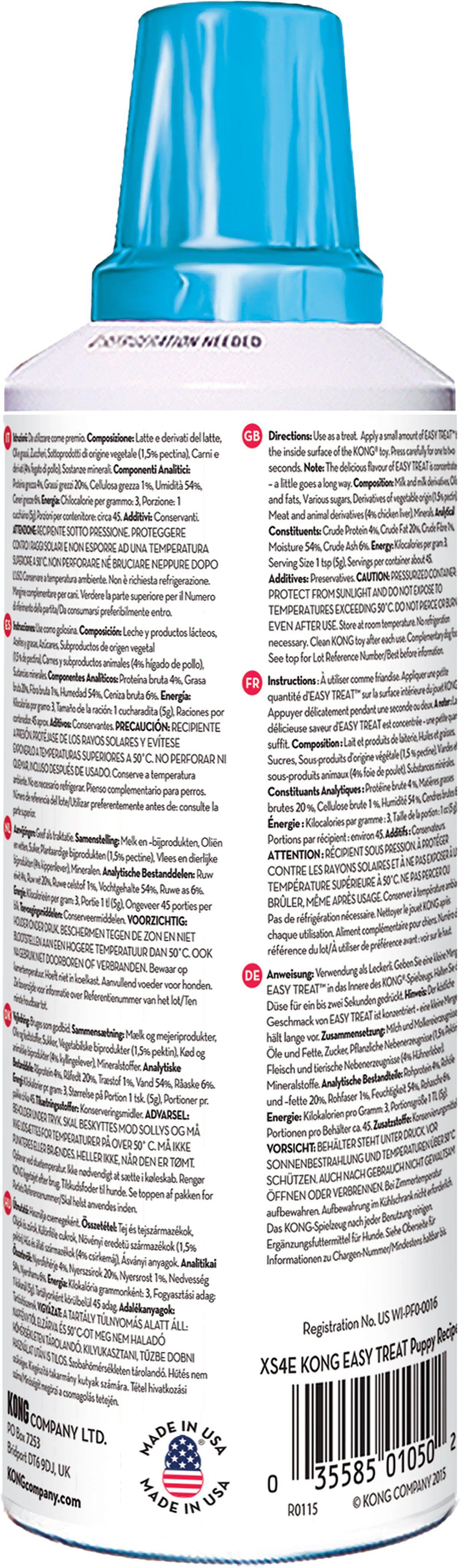 Kyllingleveropskriften i Kong Easy Treat Puppy — godbidspasta til hvalpe 236 ml/226 g er udviklet til at lokke og engagere hvalpe, samtidig med at den er enkel for ejeren at bruge. Produktet har en koncentreret, fyldig smag, så en lille mængde rækker langt som belønning ved træning eller som ekstra fristelse i hverdagen.