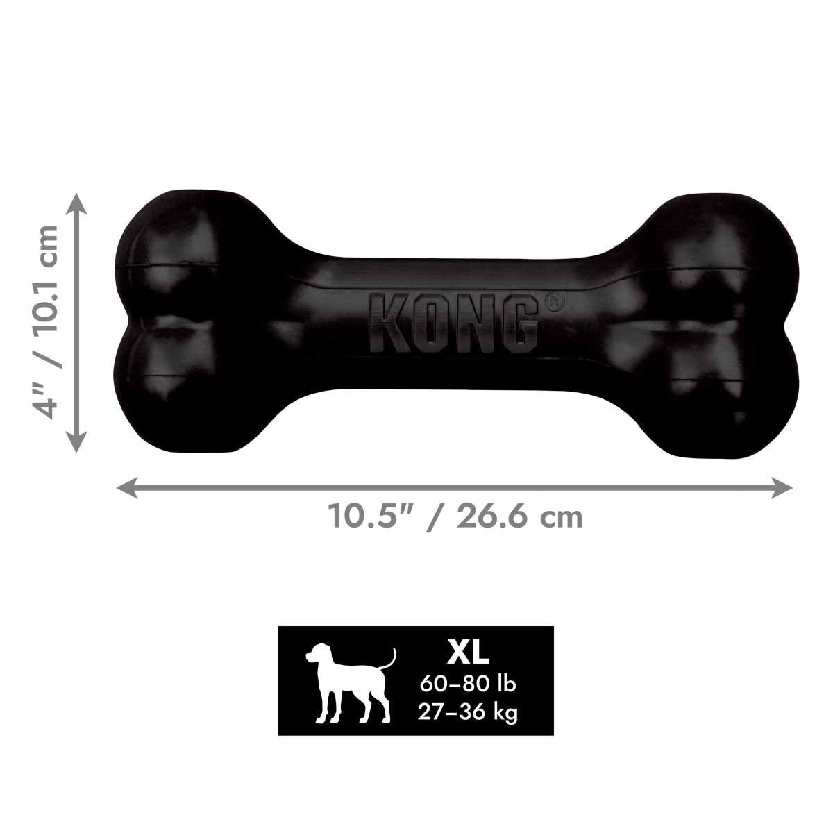 Kong Extreme Goodiebone Xl tyggeben til hunde 10x26,5x7cm er designet til hunde med en stærk bid og stor tyggeglæde. Legetøjet er lavet i KONG Extreme's særlige, naturligt sorte gummiformula, som giver ekstra slidstyrke sammenlignet med almindeligt hundelegetøj og gør det velegnet til beslutsomme tyggere.