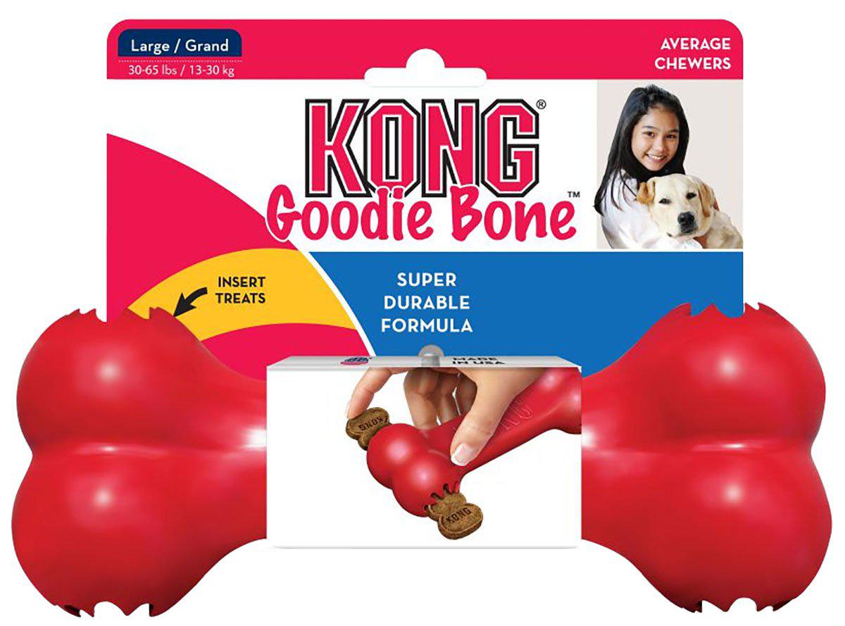 Kong Goodie Bone M 18 x 6,5 x 4 cm er et robust tyggeben, der engagerer hunde, der elsker at gnave. KONG Goodie Bone™ kombinerer det klassiske tyggeben med de patenterede Goodie Grippers™, så legetøjet både er velegnet til gnaveleg og til at gemme og frigive godbidder som en sjov godbidsudfordring.