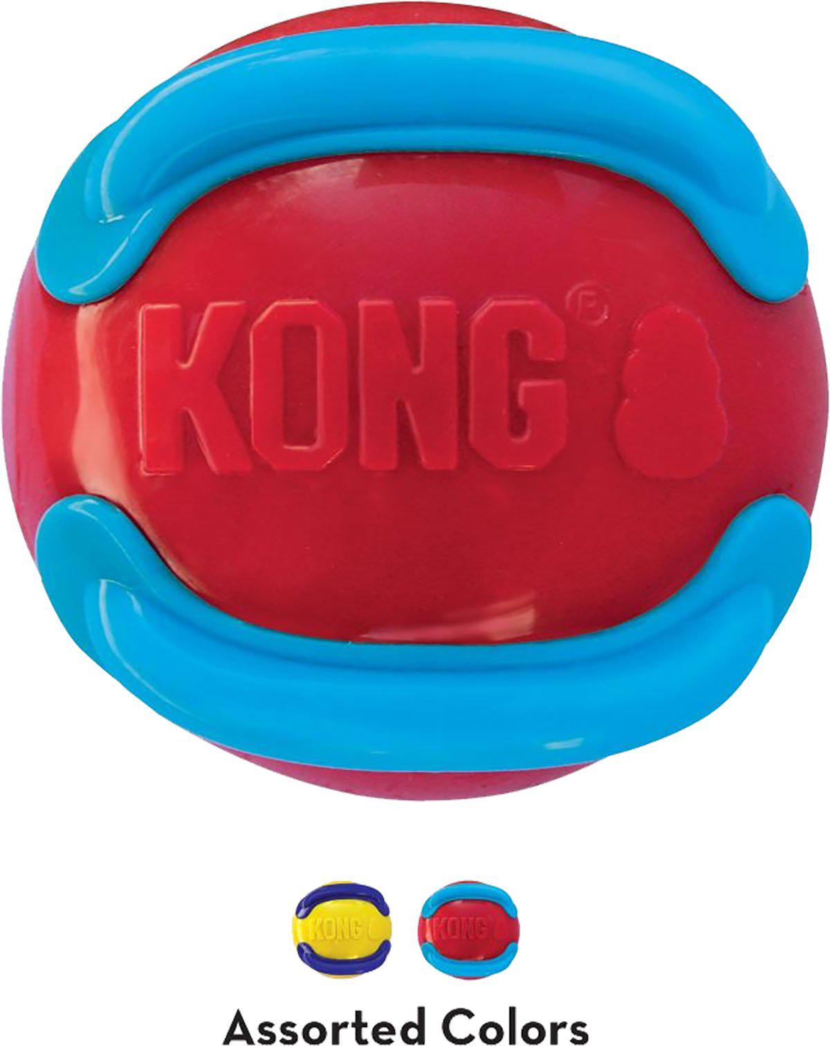 KONG Jaxx Brights Ball Mix, stor Ø7,5 cm er fremstillet i slidstærke materialer og er designet til at belønne apport- og tyggeadfærd. Forhøjede kanter giver en uforudsigelig studs og et godt greb, hvilket gør bolden velegnet til interaktiv leg og gentagne kast.