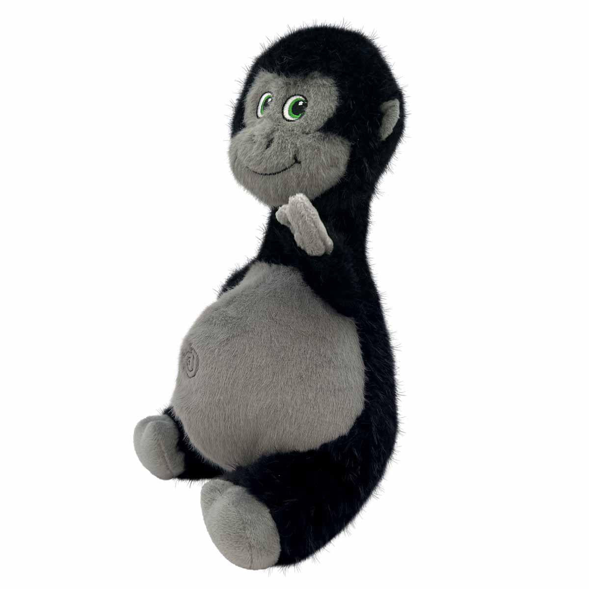 En pipelyd i gorillens hoved vækker nysgerrighed og øger engagementet under legen. KONG Knots Belly Gorilla er også velegnet til hunde, der kan lide at bære deres legetøj rundt, og den fungerer lige så godt til rolige tupplurer som til aktive lege.