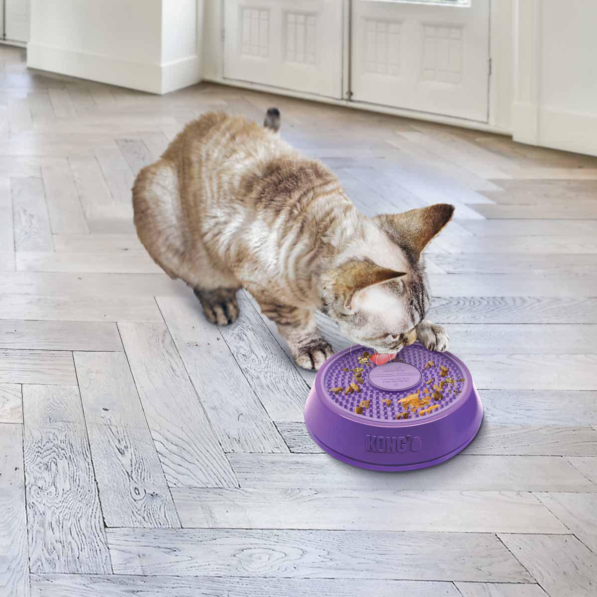 Kong Licks Spinz er et velegnet berigelseslegetøj til hundeejere, der ønsker at kombinere godbidder og tandvenlig aktivering. Fyld pladen med vådfoder eller godbidspasta, hold øje ved første brug, og rengør pladen efter behov for langvarig brug og frisk ånde.