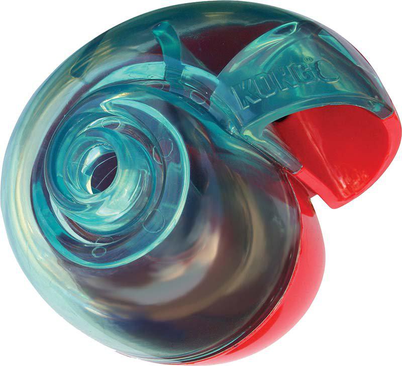 KONG Reward Shell Small Ø13 cm er et rullende og studsende godbid‑legetøj, der tilfældigt frigiver godbidder eller foder, når hunden rører ved det. Den uforudsigelige studs giver mental stimulans og holder hunden engageret længere, hvilket gør legetøjet velegnet til leg, træning og problemløsning.