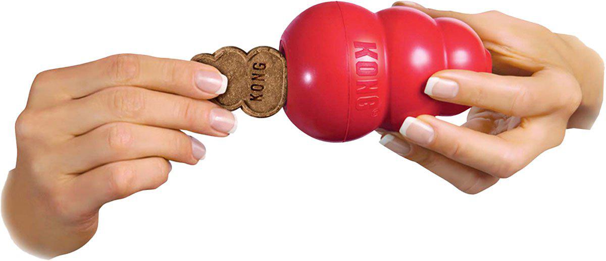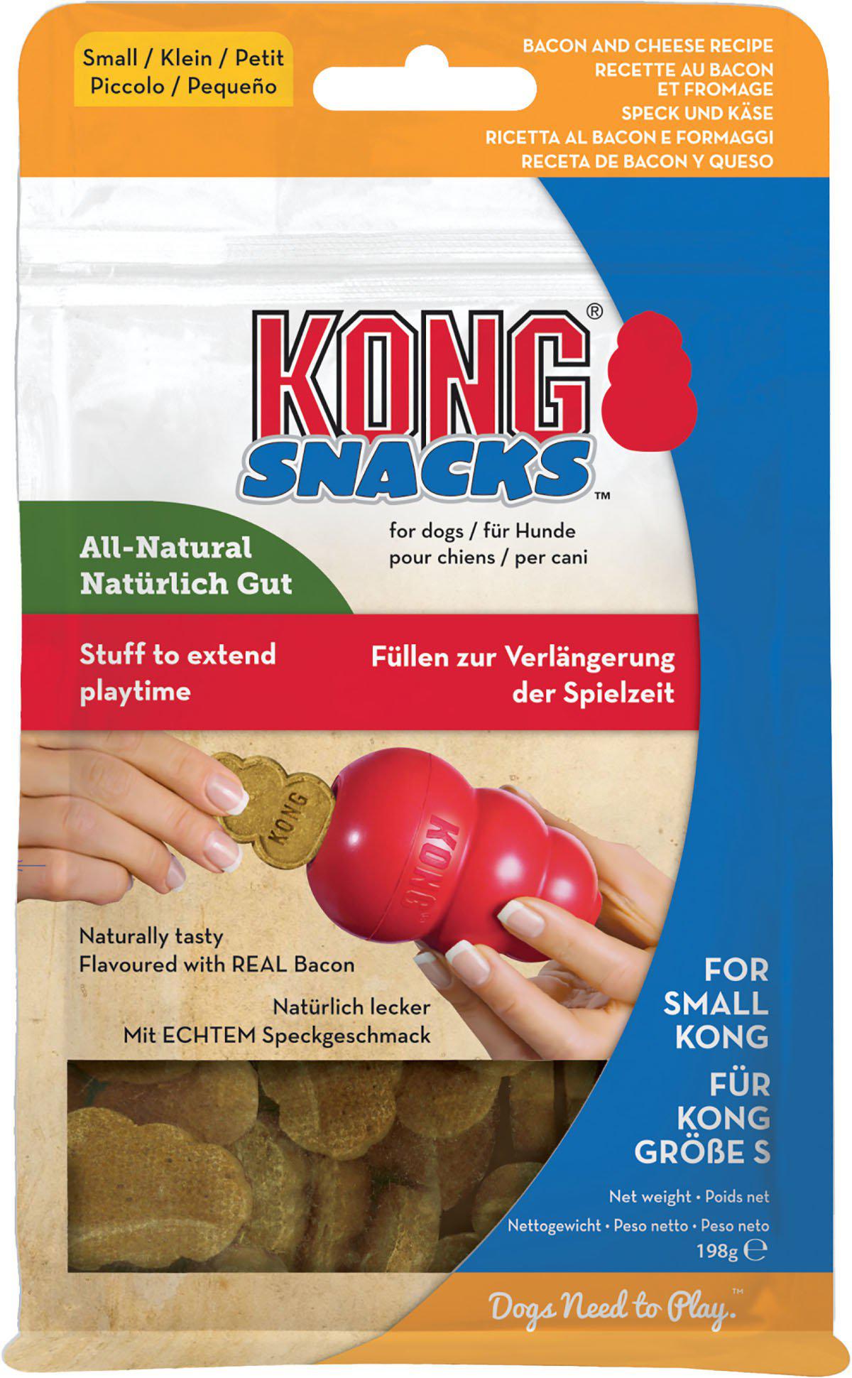 Kong Snacks Bacon & Cheese L 312G - godbidder til hunde er fremstillet i USA af helt naturlige ingredienser uden hvede, majs eller soja. De velsmagende hundesnacks kombinerer bacon og cheddar i en opskrift, der gør dem perfekte som træningsgodbid eller belønning under leg og i hverdagen.
