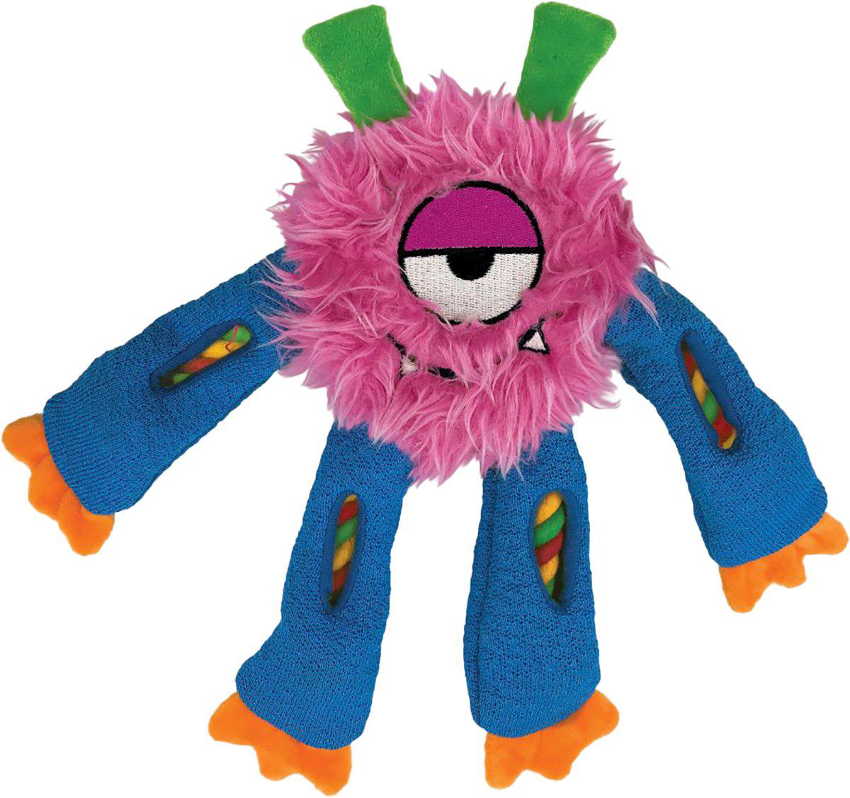 De lange, dinglende ben gør Sneakerz Knots ideel til ryst- og træklege med din hund, og kombinationen af reb og blødt materiale giver flere bidflader, der opfordrer til længere leg. Kiggehuller og piblyde øger hundens engagement og gør legetøjet velegnet til at stimulere nysgerrighed og samarbejde mellem hund og ejer.