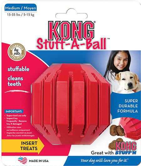 KONG Stuff a Ball M 16,5 x 14 x 8 cm er udviklet til at imødekomme din hunds naturlige tyggebehov. Fremstillet i holdbart KONG Classic-gummi giver bolden både afledning og tilfredsstillelse til tyggeglade hunde, samtidig med at materialet er skånsomt mod tænder og tandkød.