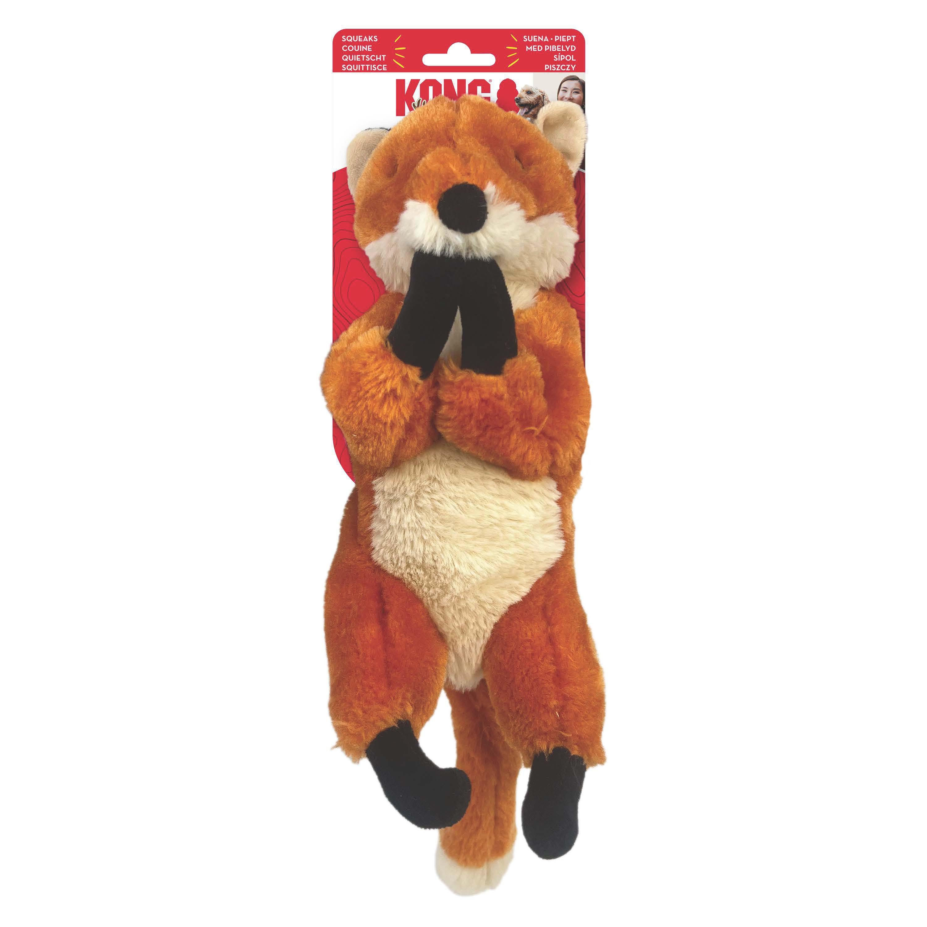 Kong Wild Low Stufffox 18x35,5x7,5 cm er et blødt hundelegetøj til hunde, der elsker jagtleg. Dyrets tætte pels og realistiske, lidt slappe krop stimulerer jagtinstinktet, og formen indbyder til ryste- og kastelege, mens den indbyggede pibe vækker nysgerrighed og holder legen i gang.