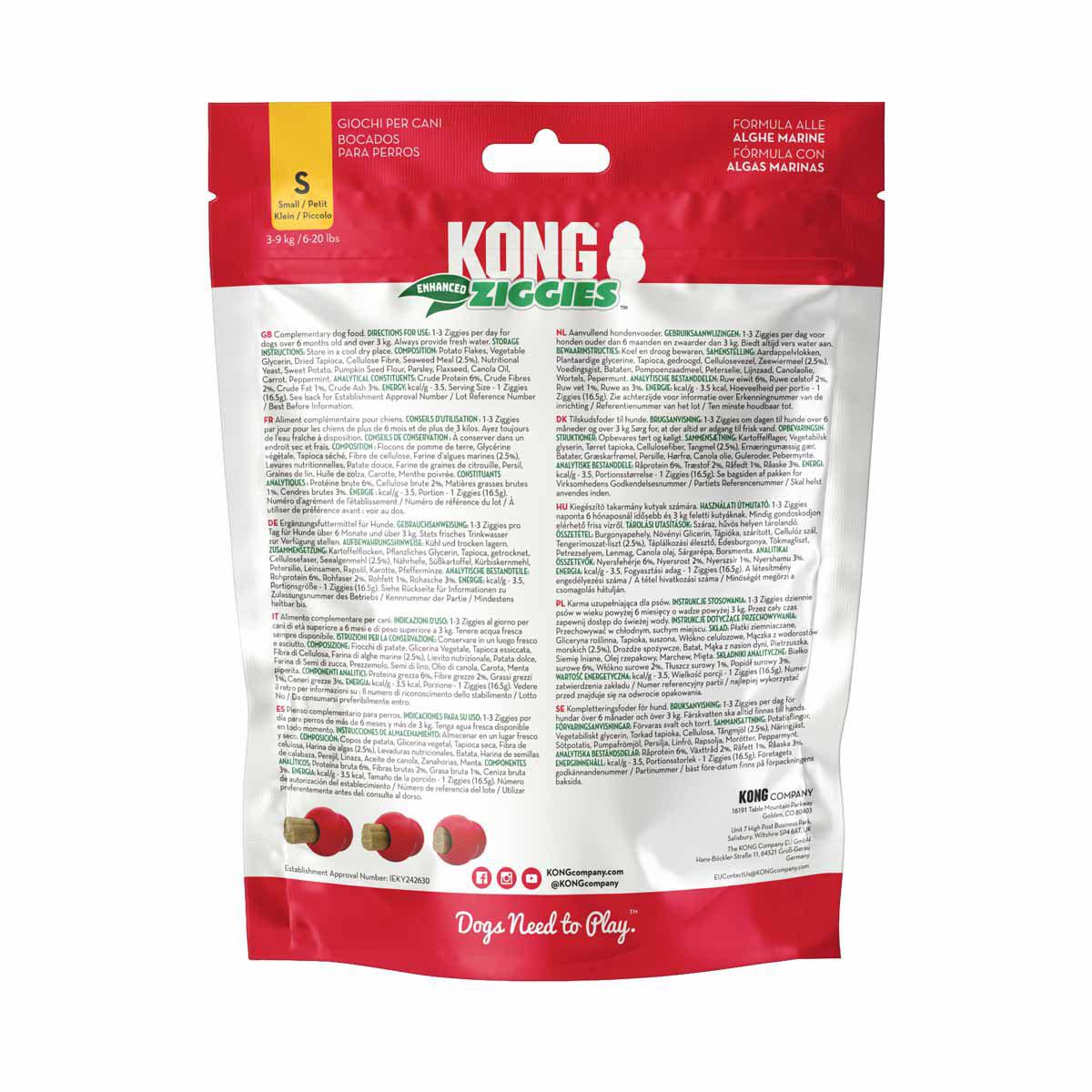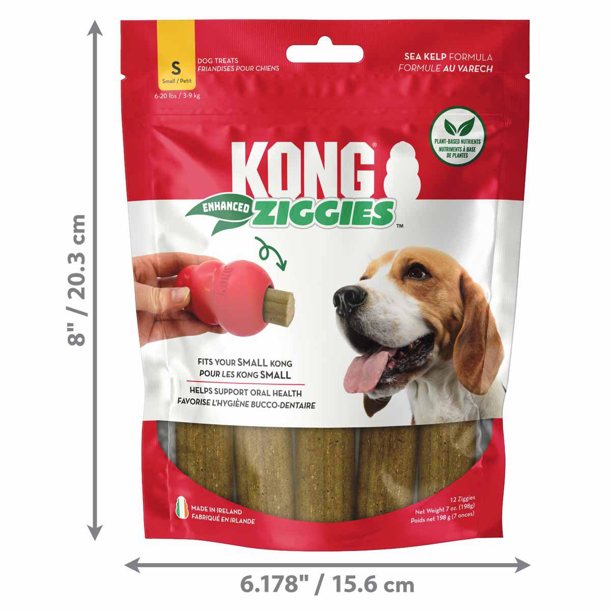 KONG Ziggies Enhanced S 198 g er en plantebaseret hundegodbid beriget med søgræs, en naturlig kilde til mineraler, vitaminer og sporstoffer. Den velsmagende, naturlige opskrift gør Ziggies™ velegnede som belønning under træning eller som en lækker snack mellem måltider.