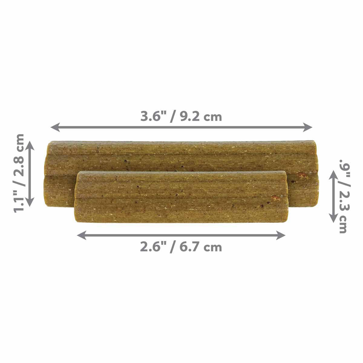 Den faste, seje konsistens hjælper med at rense tænderne og massere tandkødet, hvilket understøtter mundsundheden. Formlen er plantebaseret og indeholder ingen hvede, majs eller soja, hvilket gør produktet til et godt valg for ejere, der vil undgå kornbaserede snacks.