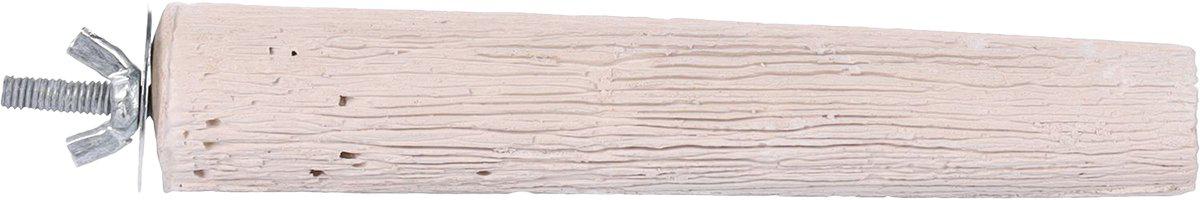 Mineral siddepind S 13.7x2.5 cm er en kompakt siddepind til små fugle som undulater, parakitter, kanarier og andre små papegøjer. Den faste, mineralske overflade giver fuglen et naturligt og skridsikkert underlag at sidde på og hjælper samtidig med skånsom slitage af næb og klør.