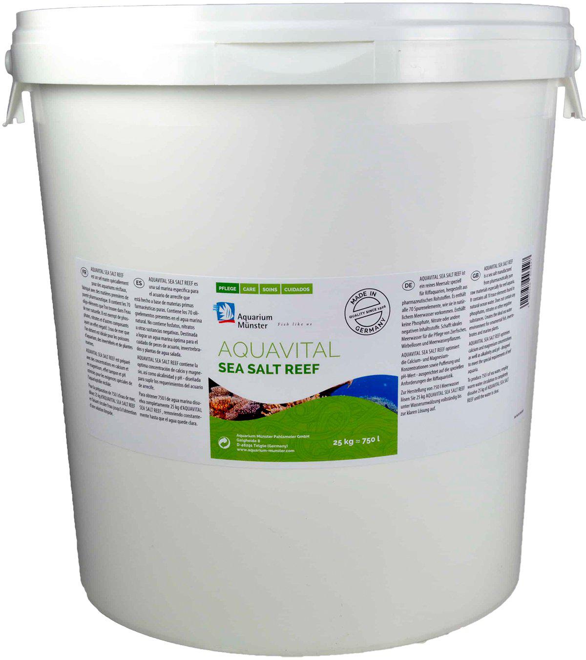 Munster Seasalt Reef 25 kg er en bulk saltblanding baseret på AQUAVITAL SEA SALT REEF, udviklet specielt til reef- og saltvandsakvarier. AQUAVITAL SEA SALT REEF optimerar calcium- och magnesiumkoncentrationer samt alkalinitet och pH speciellt för saltvattensakvarium, hvilket på dansk betyder, at blandingen hjælper med at sikre de rette calcium- og magnesiumniveauer samt en stabil alkalinitet og pH i marine systemer.